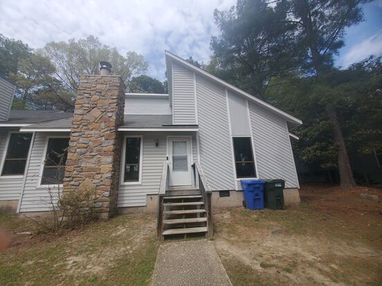 Welcome to this charming 3 bedroom, 3 bathroom two-story duplex in Fayetteville, NC. This home features a heat pump for heating and central A/C to keep you comfortable year-round. Enjoy the cozy carpet and vinyl flooring throughout, as well as a formal dining room for entertaining guests. Step outside to relax on the back deck or utilize the attached outside storage for your convenience. The privacy fenced backyard offers a peaceful retreat, while the great room with a wood-burning fireplace is perfect for cozy nights in. Stay cool with ceiling fans in every room. Don't miss out on this lovely home with all the amenities you need.