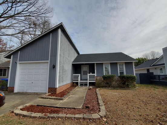 Very cute 3 bedroom, 2 bath home near Ft. Bragg. This home has a covered front porch perfect for sitting. Inside you will find a nice-sized great room with a wood-burning fireplace and vaulted ceilings. The kitchen has a range, dishwasher, microwave, eat-in kitchen, & fridge. The kitchen also has granite countertops and a tile backsplash. This home features a laundry room with washer and dryer hookups. The fenced backyard has a nice patio for entertaining as well as an IN GROUND POOL WITH LIGHTS. This home also includes a heat pump for heating & central a/c, window treatments, a security system (tenants responsibility), smoke alarms, carbon monoxide detectors, ceiling fans, and a single car garage.