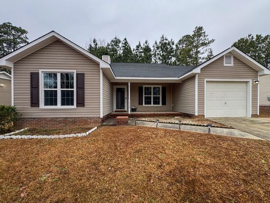 This charming 3-bedroom, 2-bathroom home is located in the Jack Britt school district. The home boasts a spacious living room, accentuated by a vaulted ceiling and a cozy fireplace. The primary bedroom features vaulted ceilings and an en suite bathroom, offering a private space within the home. Outside, you'll discover a fenced backyard, abundant with trees, providing a perfect outdoor space for relaxation or entertaining. Enjoy the convenience of the attached garage! No smoking. No pets.