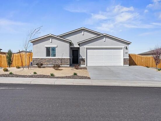 New home ready for rent. Includes washer and dryer and refrigerator and alarm system and yard service. This immaculate big bright 4 bedroom home features open floor with large bedrooms, a laundry room, and large fenced yard. Amenities include automatic garage door opener and on demand water heater. Located in a nice new neighborhood with its own small park and mountain views.