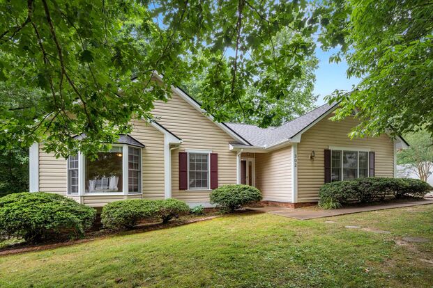 One-level home in Fletcher’s Southchase neighborhood featuring a split bedroom floor plan, fenced backyard, and an attached garage. Hardwood floors are throughout except for tile in the kitchen and baths. The foyer offers handy built-in shelving and a coat closet. The living room features vaulted ceilings with skylights, a decorative fireplace (inoperable), and a door to the deck and backyard. The window in the eat-in dining area has a deep sill perfect for cookbooks or potted herbs. Kitchen appliances include the refrigerator, electric range, dishwasher, and microwave. The primary bedroom suite has vaulted ceilings, two closets, and an open en suite bathroom that includes a double sink vanity, garden bathtub/ shower, and W/C. The laundry closet has full-size washer and dryer hookups and is conveniently located next to the primary bedroom suite. The remaining two bedrooms are on the other side of the living room along with the hall bathroom that includes a shower/ bathtub. Central heat and air conditioning. Tenant responsible for landscaping and lawn care and all utilities, including natural gas, electricity, and water/sewer. No cosigners. No smoking. No pets.