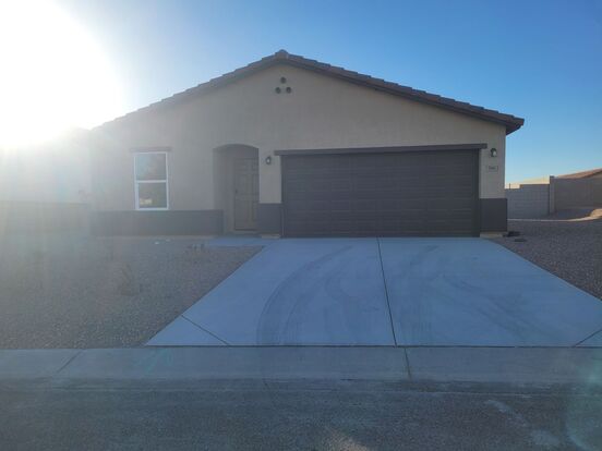 Discover modern living in this newly constructed single-story home in the Twin Palms Estates community! This 3-bedroom, 2-bathroom home offers 1,290 sq. ft. of beautifully designed living space on a spacious 7,405 sq. ft. lot. The open Alamar Plan seamlessly integrates the living, dining, and kitchen areas, perfect for gatherings and everyday living. The kitchen boasts stunning cabinetry, granite countertops, and stainless-steel appliances, including a range, microwave hood, and dishwasher. The primary suite is a tranquil retreat with a private bathroom, dual vanity sinks, and a walk-in closet. Two additional bedrooms and a second full bathroom complete this thoughtfully designed home. Additional features include a 2-car garage and central A/C. Welcome to your new home!
