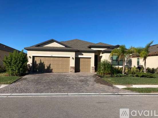 This model house by Lennar is a beautifully designed single-family home located in the highly sought-after, gated Portico community in Fort Myers. This spacious residence offers four bedrooms, three bathrooms, and a three-car garage, making it ideal for both comfortable family living and entertaining. The home features an open-concept floor plan with a bright, airy great room that flows seamlessly into a contemporary kitchen equipped with stainless steel appliances, granite countertops, a large center island, and modern cabinetry. The owner’s suite serves as a private retreat with dual walk-in closets and an elegant ensuite bathroom. Large sliding doors lead to the covered lanai, creating a perfect indoor–outdoor living experience.