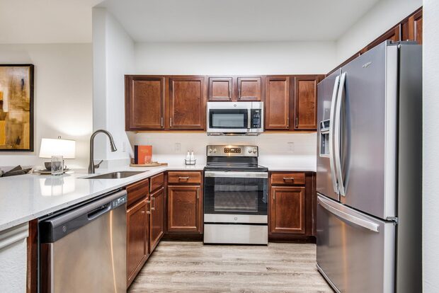 Cool Springs at Frisco Bridges is an inviting, pet-friendly apartment community in Frisco, TX. We offer studio, one-, and two-bedroom apartments for rent featuring spacious work-from-home friendly layouts, wood plank flooring, and private patios and balconies. Newly updated interiors feature quartz countertops, stainless steel appliances, wood plank flooring, and more. Here, enjoy close proximity to the best shops and eateries in Frisco, as well as easy access to beloved sports arenas like The Star and Dr. Pepper Stadium. Plus, commuters will enjoy more time at home with the Dallas-Fort Worth metroplex just 30 to 40 minutes away. That means more time can be spent poolside at one of our three resort-style pools or in the fully-equipped fitness center working towards your health goals. We are currently offering self-guided tours.