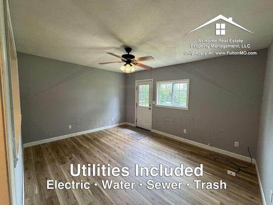 - Owner/Broker. Step into modern comfort with this 2-bedroom, 1-bath apartment, boasting dark laminate hardwood floors and contemporary grey tiling in the kitchen and bathroom for a sleek feel. The spacious kitchen/living area is a highlight, featuring bright white cabinets and ample countertop space, perfect for culinary enthusiasts and entertainers alike. This apartment combines style with practicality, making it an ideal choice for those seeking a comfortable retreat. Bedrooms: 2 | Bathrooms: 1 Pets: Sorry, no cats. If another pet is accepted, there is a one-time non-refundable Pet Fee of $300 per pet. In addition to the Pet Fee, pet rent of $20 per pet is due each month. Accept HUD: No Utility and Services: City of Fulton To apply, please visit www.fultonmo.com/residential and review our FAQ page at www.fultonmo.com/faq for common application questions and application requirements. Broker Disclosure: www.fultonmo.com/broker-disclosure No Cats Allowed (RLNE8401525)