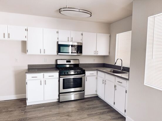 Neutral Paint and wood like flooring throughout. Stainless steel appliances.