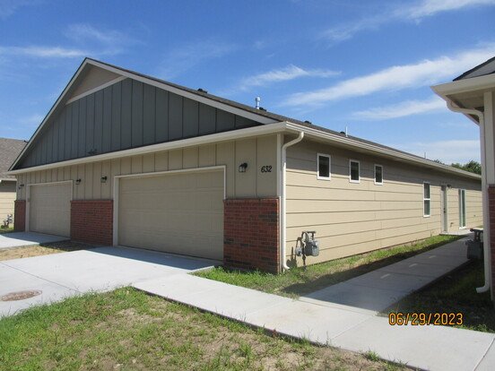3 bedroom, 2 bath homes in Goddard ready to move in! Lawn care, trash included with rent. Home features master suite with full bath and walk in closet. Walking distance to schools!