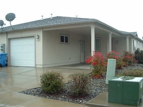 This unit includes vaulted ceilings, nice counter tops, cabinets and flooring. It also includes its own laundry room with washer and dryer hook ups, attached single car garage, and a small fenced back yard. Water, sewer, garbage included.