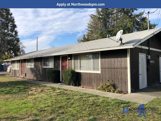 DESCRIPTION: This cozy 1 bedroom 1 bath duplex in Grants Pass! This cozy duplex has newer vinyl plank flooring in the living room and bedroom. Fresh paint. This home is close to shopping and to the fine restaurants that Grants Pass has to offer. The living room has a huge window to let the sunshine in. The bedroom has a good size closet. Large front yard with landscaping included. The kitchen is equipped with a stove and fridge. Good sized windows for the natural light to come through. Plenty of storage and an added storage shed to help with your storage needs.
