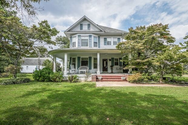 This 1920's farmhouse is a TRUE GEM with both residential and commercial zoning potential, over 2.5 ACRES of flat and usable land, and meticulously maintained. This would be a perfect primary residence, Bed & Breakfast, rental property, or commercial investment with city water at the road! This charming home currently features refinished hardwood flooring on the main level and pine flooring upstairs, extensive dental crown molding throughout, 9+ ft ceilings, brand new windows throughout, custom kitchen cabinetry with new granite tops, and so much more! You'll love the traditional parlor room with fireplace at the front of the home, the massive wrap around porch with plenty of shade, large formal dining room, main level den with another fireplace (could be a main level bedroom), breakfast/sitting room off of large kitchen, ample laundry/utility room plus a full bath and 1/2 bath on the main level. Upstairs features large primary suite with double closets, and over-sized bedrooms, closets, and bonus room area. Remodeled full bath upstairs features tile surround, LVP flooring, and fresh paint! Outside, you will find a HUGE attached carport plus a detached workshop with central heating and air with cabinetry, additional 1/2 bath, and a large bonus/loft area above! The main road convenience yet privacy created by mature trees is really a rare combination. There is a well on the property as well as two HVAC units (one is almost new!), and two propane tanks (one owned and one leased). Note that the fireplace is currently capped. Call today for your private tour of this historic masterpiece! The possibilities are endless!