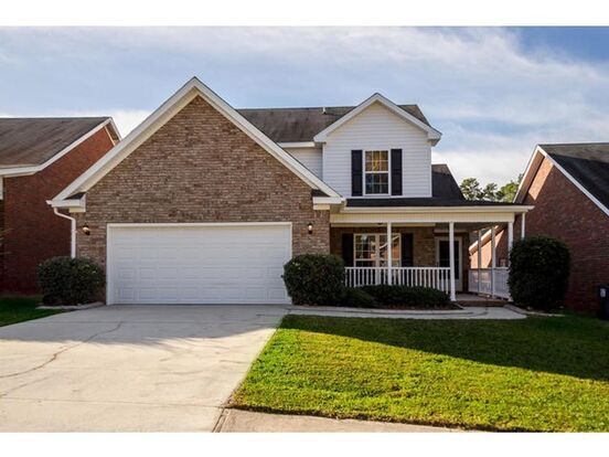 Welcome to this pretty all brick two story home with wrap around front porch in popular Columbia County! Lease would need to start November 1, 2025. Minimum credit score requirement for every adult living in the property is 650, no pets, no roommates, no smoking. This home is 4 bedrooms 2 1/2 bath with Master with vaulted ceiling on the main level. Master bath with double sinks, soaking tub and tiled glass master shower Open floor plan with high ceilings, nice folding , formal dining room and breakfast room. Corner gas Fireplace in great room with vaulted ceiling. Hardwood in dining room and Great room. Tile in foyer , kitchen , laundry and bathrooms. Stainless appliances in kitchen including refrigerator , glass smooth top stove , built in microwave , lots of counter space and eat in bar. Lots of windows for natural light with 2 inch faux wood blinds. Side stairs lead to second level with three more bedrooms and a full bath. Brand new Hvac for energy efficiency! New fence! Lots of storage throughout and walk out storage. Laundry room downstairs with built-in cabinets. Patio off of great room for entertaining. Two car garage with automatic opener and sprinkler system with control in garage. Tenant is responsible for pest control and yard maintenance. Subdivision has street lights and sidewalks, conveniently located to shopping, schools, restaurants, Fort Eisenhower, and interstate