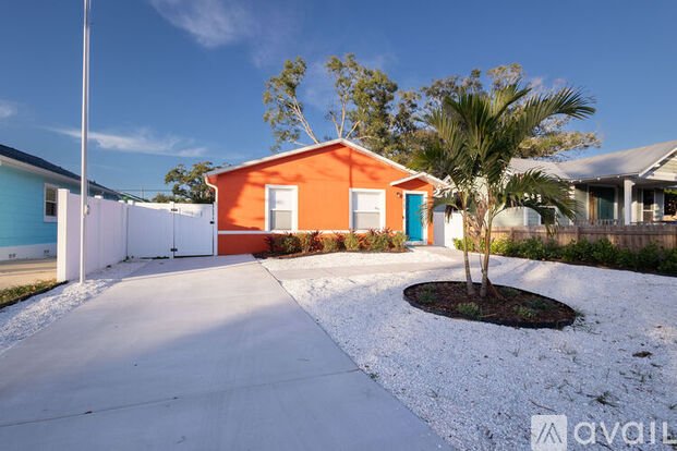 This vibrant two-bedroom one bath home blends tropical charm with modern comfort. Located in a vibrant, eclectic neighborhood, this home is delightful walk or golf cart ride from Gulfport's artsy downtown - perfect for browsing shops, savoring local eats, and soaking up the charm. Located just 1 mile from the Pinellas Trail or when you're ready for a bigger city buzz, downtown St. Pete is only a 10 minute drive away. Step inside and you'll be welcomed by tropical-inspired airy decor with sunlit touches . The fully equipped kitchen makes it easy to whip up meals at home, and a charming coffee nook is ready to fuel your mornings before you start your day. Both bedrooms are designed with comfort in mind, offering a quiet and restful space for a refreshing night's sleep. You'll also enjoy the convenience of an in-home washer and dryer. Soak up Gulfport's local charm or explore the energy of nearby St. Pete, this is your perfect home base for a lifestyle that has a balance of peace and activity that has something for everyone. The washer and dryer are located in an attached laundry room just off the back patio for easy, convenient use.