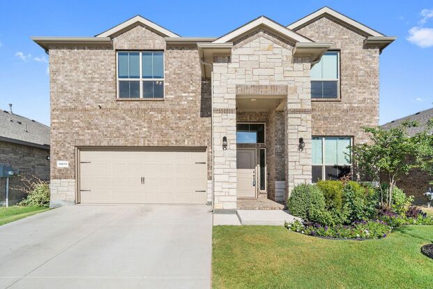 Welcome to 14613 Bootes Drive, a beautifully designed 5-bedroom, 4-bath home located in the master-planned Northstar community in Haslet. This stunning D.R. Horton Redrock floorplan offers over 2,800 square feet of stylish, functional living space with an open-concept layout & elevated finishes. The chef-inspired kitchen features a large granite island, gas range, stainless steel appliances, a walk-in pantry, and designer lighting that opens to a spacious living and dining area filled with natural light. A private guest suite downstairs is perfect for visitors or multi-generational living, while upstairs you'll find three additional bedrooms, two full bathrooms, and an ENORMOUS flexible game or living room space. The expansive primary suite offers a spa-like bath with an oversized shower with a bench, dual vanities, an oversized linen closet, and a walk-in closet. This energy-efficient home includes a tankless water heater, dual-zone HVAC, full sprinkler system, and landscaped yard with a covered patio for relaxing or entertaining. Located in the highly sought-after Northwest ISD and just minutes from I-35W and Hwy 114, this home also gives you access to Northstar’s unmatched amenities: multiple resort-style pools, including a lazy river, cabanas, clubhouse, jogging trails, soccer field, playgrounds, and well-maintained green spaces. Don’t miss your chance to own a nearly new home with all the extras in a community that truly has it all.