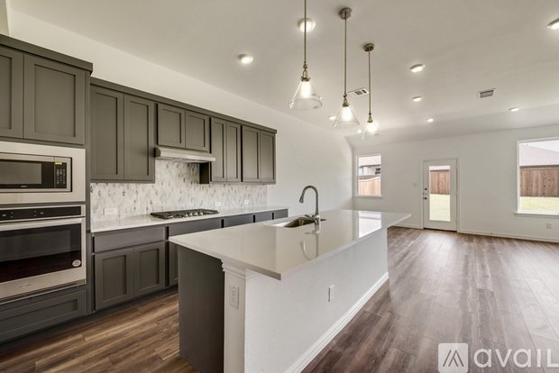 Gorgeous 2022 Built home in Forney offers 4 bedrooms, 2 full baths, 1 half bath, spacious dining area and a 2-car garage! Private master suite secluded in the rear features a luxurious bath with built-in shelving, stand-up shower, and generously sized walk-in closet. Kitchen boasts upscale finishes like Energy Star stainless steel appliances, shaker cabinets, pure white quartz countertops, an eat-in island, built-in microwave and oven, a sizeable walk-in storage pantry, polished nickel pendant lighting and an undermount single bowl sink. Enjoy the expansive backyard with covered patio, fully fenced and landscaped. Amenities include an amenity center with pool, clubhouse, park and playground. New on-site elementary school. Easy commute to Dallas. No section 8 or housing vouchers