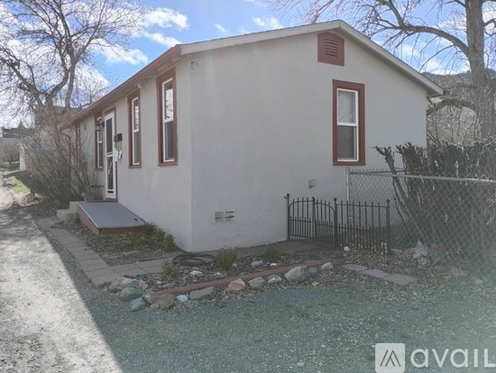 This grey stucco house with burgundy wood frames has a small side grass yard, lilac, barberry and boxwood bushes, a storage shed, a brick patio with a wood bench, a paver walkway surrounded by a wrought iron-look fence and off-street parking. No pets or smokers. Available May 1. Phone 406-440-5381 for information or to view.