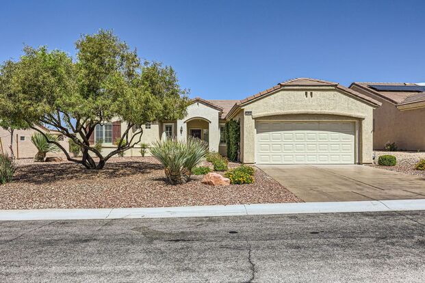 Check out this updated 2 bedroom plus den in the age-restricted community of Sun City Anthem. Covered patio with elevated lot. The kitchen features quartz countertops, newer appliances, and a small island with breakfast nook area.
