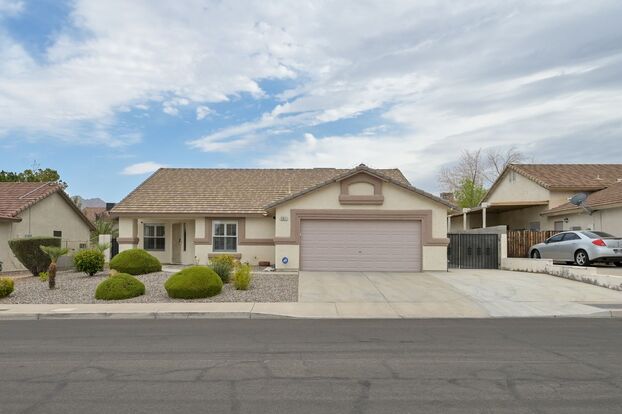 Henderson!! Solar Panels!! Tankless Hot water Heater!! Small RV Parking!!! Single Story!!! No Carpet. Low Maintenance Desert Landscape front and back. Covered patio in back yard+ Shed. Home includes Living, dining and family rooms. Kitchen: Island, Pot-shelving, Upgraded appliances, Side by Side refrigerator. Stain-steel Stove, Dishwasher, Microwave and stainless-steel sink. Shelving and Water softener in garage. No Washer and Dryer included in Laundry room. Ceiling fans in all bedrooms.