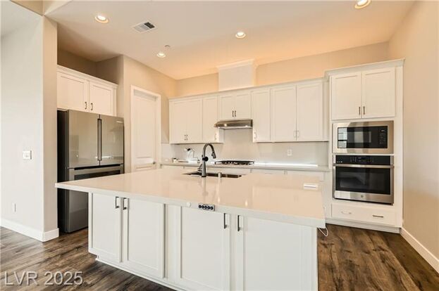 Like-new single-story home in Cadence on a spacious pool-sized lot! Enter through a gated courtyard and covered front porch into a bright, open floor plan filled with natural light. The gourmet kitchen features upgraded stainless steel appliances, a large island with breakfast bar, quartz countertops, walk-in pantry, and a dining area. A 12-ft sliding glass door connects the dining and family room to the backyard for seamless indoor-outdoor living. The large primary suite includes a walk-in closet, private patio access, and a spa-like bathroom with double sinks and a walk-in shower. Both additional bedrooms have their own ensuite baths—great for guests or multi-gen living. The backyard is a blank slate ready for your dream setup!