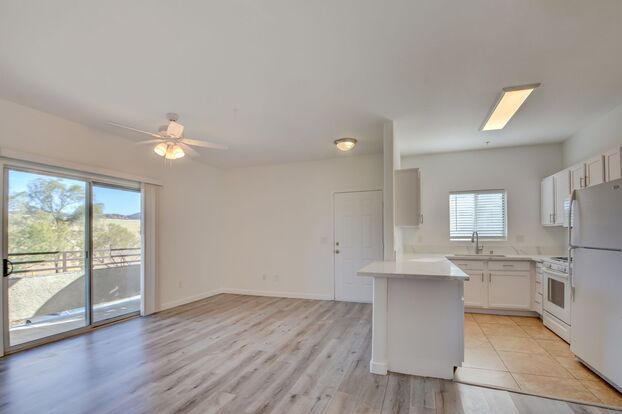 Experience the charm of this beautifully renovated 2 bed/2 bath corner unit condo on the second floor! Nestled in a secure gated community, it's conveniently located near Green Valley Ranch and The District, with easy access to major freeways. Families will appreciate the highly rated schools this complex is zoned for. The inviting layout features bright and airy spaces with new water-resistant laminate floors. The kitchen delights with a lovely window above the sink that fills the space with natural light, and the counter is just right for a cozy breakfast bar. The primary bedroom boasts two closets and a bathroom with a separate tub and shower for added comfort.