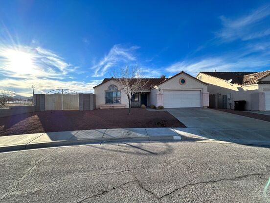 Spacious and well-designed with 2-Car Garage. Vaulted ceilings, tile and carpeting throughout. Walk-in closet in Primary Bedroom. Ceiling fans throughout. Soothing designed kitchen with track lighting, nook area and plenty of open space. Storage cabinetry in the garage. Large backyard space with covered patio and desert landscape. A cozy gem with tranquil space to relax and call Home!
