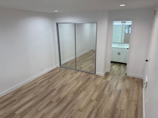 Prime Hermosa Beach Apartment! - This newly remodeled 1 bed, 1 bath, second floor unit has a lot of natural light and a private deck overlooking a lush commons area. Remodeled finishes include upgraded kitchen countertops, engineered hardwood flooring and a luxury bathroom upgrade with quartz countertops, modern fixtures, subway tile shower, and rolling shower doors. The bedroom has wall-to-wall closet space providing a lot of indoor storage space.