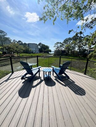 You don't want to miss this gem! This property is being offered UNFURNISHED. More updated photos coming! Freshly painted, brand-new stunning multi-layer deck with gorgeous lighting, and possibly a new driveway coming soon! Two-bedroom, two-bathroom near the heart of Harbour Town. Enjoy the expansive deck overlooking the creek to deep water views. Launch your kayak from the property or walk to Harbour Town for a bite to eat, or stroll around the marina. Featuring a nice kitchen with all major appliances and a utility room with a washer and dryer downstairs. The primary bedroom has two closets and a full bath with a tub/shower. The guest bedroom has a large closet and access to a full bath with a sitting tub and walk-in shower. The living area is surrounded by windows with gorgeous views. Pets considered on a case by case basis with an additional pet deposit and owner approval. Seeking a long-term lease. All utilities are tenant responsibility, except basic cable/wifi service and pest control.
