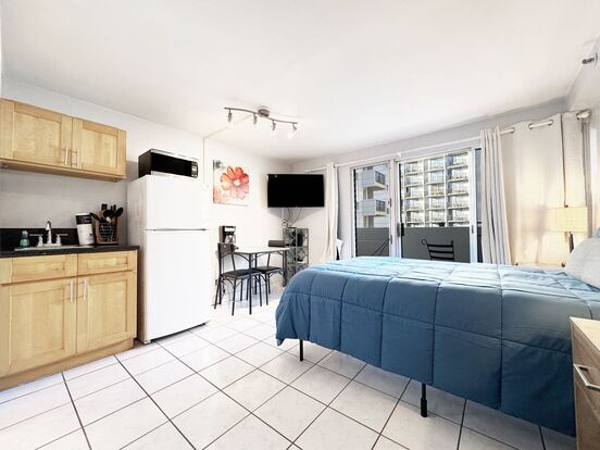 Furnished Waikiki Studio With A/c