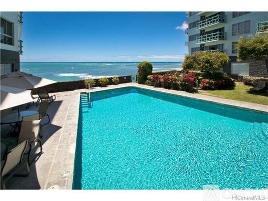 Pool and garden level 2 bedroom and 1 bathroom condo next to the ocean. Easy access to swimming and surf at Tonggs, Rice Bowls, and Sand Bar. Ocean view from lanai and living room and bedroom windows. Outdoor surf storage. Large lanai for plants and lounging. Ocean themed counters and walk in shower. Tile floors for easy cleaning. Freshly painted and very clean. Great community and neighbors. Extra large storage and new community laundry. Available May 1.