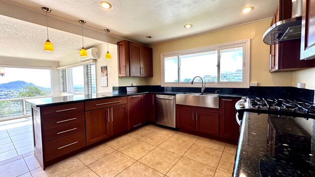 Experience this spacious rarely available 3 Bedroom, 2 Bath, with a Den and 2 off Street Parking Stalls. The home boast beautiful views of the ocean, Diamond Head and the Honolulu skyline. A fully renovated kitchen featuring a gas range with oven, stainless steel refrigerator, range hood, dishwasher, and Microwave. Shared washer and dryer on the property. With PV panels to help with the electricity cost. Avocado and lime trees in the front and back yard.