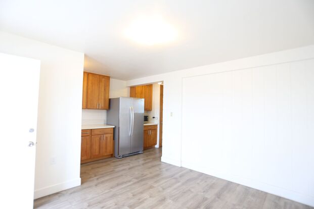 Renovated 1 bedroom, 1 bath with 1 parking on second floor. Improvements to the unit include luxury vinyl plank flooring throughout, solid surface countertops and upgraded cabinets in kitchen. Double door stainless steel refrigerator in kitchen along with glass top stove. Window air conditioner in living room. Full size washer on back lanai. NO PETS, NO SMOKING, NO EXCEPTIONS. Built in 1959, this two-story building contains six one bedroom units. Three are on the ground floor and three on the second floor. Six month lease to start. Old Stadium Park located behind the building. Long's Drugs is just minutes away.