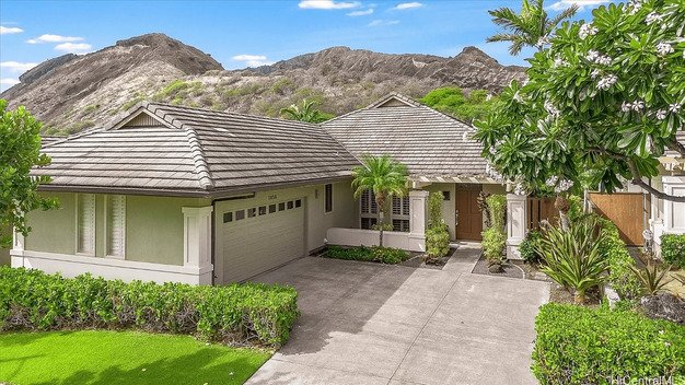 This elegant single-story residence, spanning 2,362 sq ft, is situated within the coveted Koko Villas, an exclusive enclave of just 71 homes. Built in 2005, this beautiful retreat offers 3 bedrooms, 2.5 bathrooms, and is located just moments from white sandy beaches and the Hawaii Kai Golf Course. The home features sophisticated design details throughout its spacious living areas, including the elegance of high ceilings, premium travertine and hardwood floors, complemented by plantation shutters and central A/C for optimal comfort.