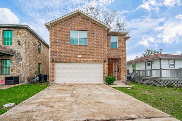 Welcome to the Independence Heights Park subdivision in the Independence Heights area of Houston! This beautiful two story three-bedroom home has a covered front patio and a decorative built-in shelf to your left as you make your way inside. The stairs are to your right and a conveniently located half bath and large storage closet that extends underneath the stairs are in the hallway leading to your living room and dining area that's open to the kitchen. Downstairs has stylish wood flooring flowing throughout the space and large windows and French doors brighten up the interior. Your kitchen has white cabinets complete with hardware, stainless steel appliances and a large pantry with built in shelves on the door. The backyard has a concrete patio and large mature trees providing a great shaded area where there's plenty of room to run around or relax in. Your primary room has an amazing walk-in closet with built in shelves and dresser and the laundry appliances are included as well!