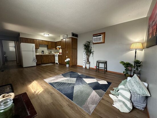 Remodeled 2 bed, 1 bath apartment for rent in Hudson - Remodeled 2 bedroom, 1 bathroom apartment for rent in desirable small town Hudson. Everything is on main level! Brand new fridge, stove cabinets/counters, and flooring. Large utility room with plenty of storage and your own washer and dryer hookups. 2 parking spots available. Built in wall a/c unit, lawncare and partial snow removal included. Located just 1 block from the Hudson community schools.