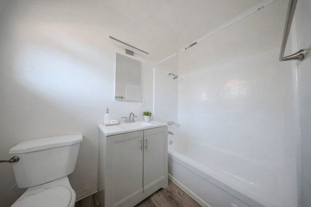 One Bedroom with Parking available! - Bright and airy one bedroom, one bath apartment located in a quiet building in Huntington Beach. Apartment features hardwood floors throughout most of the apartment, with new carpet in the bedroom. Eat-in kitchen features dishwasher, stove, pantry, ceiling fan and lots of wood cabinetry. Bedroom features good-sized closet and ceiling fan as well. Apartment has gated patio. Carport space included.