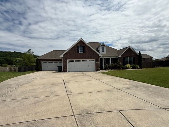 Welcome home to South Huntsville! This spacious full brick home offers an open floor plan with LVP flooring and tile. Washer and dryer included. Large primary bedroom with carpet, garden tub and huge walk-in closet. Outside offers a fenced in backyard with a large patio, a 4 car garage and extra wide driveway for extra parking! Schedule your tour today before it's gone!