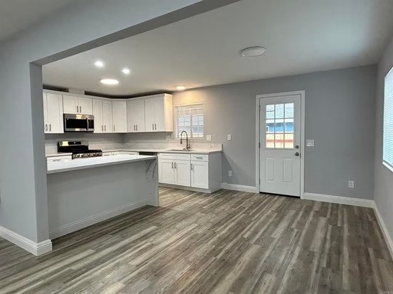 Key property features include a bright front door, a modern kitchen with stainless steel appliances, and a covered patio area perfect for relaxation. The interior boasts fresh paint, new laminate flooring, and ample natural light, enhancing the open-concept layout. For added comfort, each bedroom is equipped with ceiling fans, and a dedicated laundry area provides convenience.