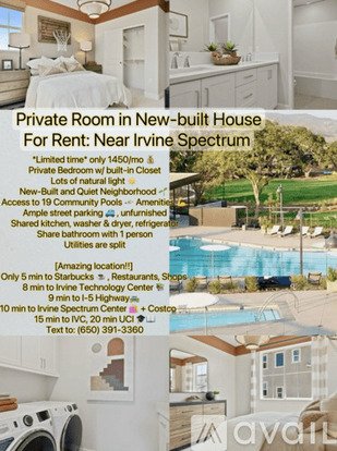 $1,450 - 1 Bedroom SharedBathroom Apartment In Irvine New-Built House