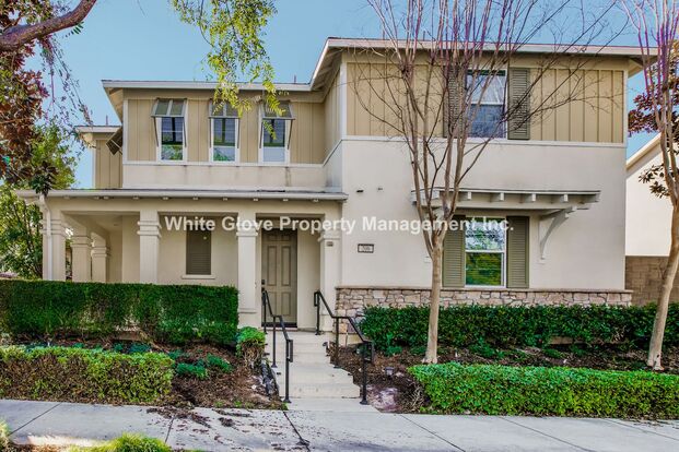 Open concept and very spacious living room, dining room and kitchen. Kitchen features dark wood cabinets, stainless steel appliances, granite counters, pantry, reverse osmosis water filtration system under kitchen sink, tile floors and a large island. Bedroom and full bathroom downstairs. Upstairs has a large primary suite with high ceilings, recessed lighting and attached spacious bathroom bathroom with dual sinks, extra large tub and walk-in closet. Two guest bedrooms, hall bath, laundry room with washer/dryer hookups. Nice backyard with covered patio, fruit tress and artificial turf. Home features two car attached garage with ready electric fittings for Tesla chargers, central AC/heat, solar and water softener. Home is part of the Great Park Neighborhood and closest to Pavilion Park. Walking distance to the Pavilion pool, greenhouse, basketball court, playground and clubhouse. Residents are able to use all of the amenities in the Great Park Neighborhood. Minutes to award-winning Irvine Schools, freeways, dining and shopping.