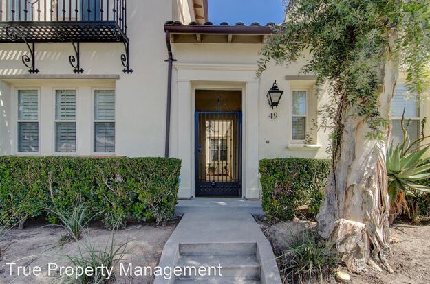 Beautiful home with many upgrades in upscale Woodbury community in Irvine. Third room downstairs - could be used as third bedroom without closet and will need an armoire or can be used as a den or office. All other living area on one level upstairs. Very open floor plan with highly upgraded kitchen with granite counter tops, dark cabinets, and open to living room and dining areas. Hardwood in all bedrooms and top quality flooring in kitchen and living area. Indoor laundry with almost new washer and dryer. Upgraded woven window coverings and plantation shutters in bedrooms. Woodbury community as resort type amenities-pool, many parks, clubhouse and great award-winning schools within walking distance. Small pets considered.