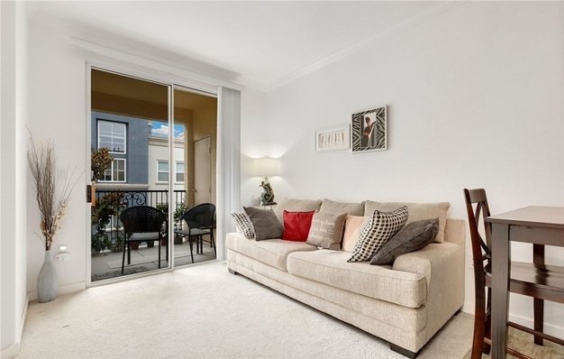 Experience the perfect blend of comfort and style in this upper-level one-bedroom condo, located within the prestigious gated community of Watermarke. The beautifully appointed kitchen features granite countertops, under-cabinet lighting, stainless steel appliances, and in-unit laundry for your convenience. It opens seamlessly to the dining area, office nook, and spacious living room, where sliding glass doors lead to a private balcony, offering an ideal indoor-outdoor flow.