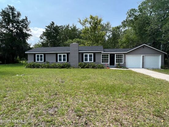 Welcome to your sanctuary in North Jax! Nestled on a generous plot of land, this 3-bedroom, 2-bathroom home offers the ideal blend of tranquility, space, and convenience. With no HOA to restrict your lifestyle and ample room to park your RV or boat right off I295, this property is a rare gem you don't want to miss! With almost 2 acres of land, you'll have plenty of space to unwind, relax, and enjoy the great outdoors. Whether you're hosting a summer BBQ, gardening enthusiast, or simply seeking a peaceful retreat, this property provides limitless possibilities. Embrace the freedom to live life your way, with room for all your toys and adventures. Discover a wide range of shopping, restaurants, parks, and recreational facilities just a short drive away. Schedule a viewing today !