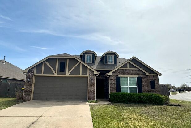 Welcome to this charming 3 bedroom, 2 bathroom home in Jenks, OK. This house features a spacious open floorplan with vaulted ceilings and large windows that flood the space with natural light. The kitchen boasts a built-in microwave, walk-in pantry, and breakfast bar, perfect for entertaining. The wood floors throughout the main living areas add a touch of elegance, while the carpet in the bedrooms provides comfort. The fenced-in yard is ideal for pets, with dogs allowed on the property. Additional amenities include a 2 car attached garage, built-in cabinets in the laundry room, and plenty of storage space. Don't miss out on this lovely home in a great location!