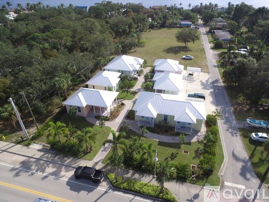 Upscale open-concept unit with beautiful kitchen and bathroom- full-size washer and dryer- spacious great room, bedroom and closet- 9'4" ceiling throughout- granite countertop with undermount deep/wide sink and disposal unit- large porcelain tile floor- energy-efficient stainless steel appliances and central air conditioner- ceiling fans- tankless water heater- impact windows and door with blinds. Non-smoking. Friendly pets up to 50 lbs. of permitted breed. RIO PORCHES is a nine-year new coastal "pocket neighborhood" containing four cottages plus two duplexes overlooking a front yard or the courtyard. Lighted paver walkways lead to each unit's individual front porch surrounded by trees and privacy hedges. The concrete/block/steel one-story elevated design provides quiet interiors and hurricane wind resistance. RIO PORCHES is one block north of the St. Lucie River. The Indian River, beaches, downtown Jensen and Stuart, and Indian RiverSide Park are just minutes away.