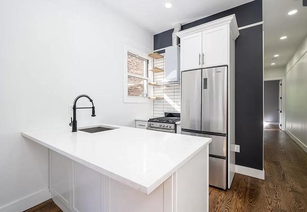 This chicly upgraded 3 bed, 2 bath Jersey City apartment is a complete rehab offering boutique charm in McGinley Square. The interior boasts brand new hardwood floors throughout, recessed lighting, bay windows, and a bright, open kitchen. New stainless steel appliances and crisp quartz countertops will elevate your weekend waffles. Youâll also have built-in heating and cooling, beautiful new bathrooms, and shared laundry room access. Plus, the lobby and common areas of this building offer stylish designer finishes.Â