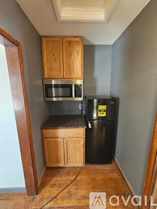Cute little efficiency apartment attached to a main house. 200sq ft of living space. Hardwood floors in the bedroom. Bath has tile floor and tile shower with cute accent. Kitchenet has a refrigerator and microwave with a small granite counter and cabinets. Outside is a enclosed entryway half of which goes with the unit. Beside the entry are stairs to the basement, 9'x14' storage room and the units washer dryer room.