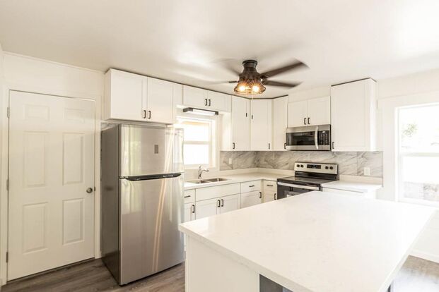 Freshly updated from top to bottom, this front unit of a duplex welcomes you with modern touches and a cozy ambiance. Enjoy the convenience of shared amenities including a washer & dryer and parking, enhancing your daily routine.