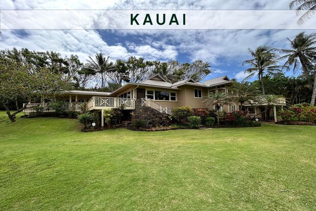 Private, secluded home with lava rock wall and gate on nearly 3/4 acres. The home sits across from Anahola Beach with gorgeous ocean views from the home. There are 3 bedrooms and 3 full bathrooms. The home has AC units in bedrooms, office and living area. There is an additional space for yoga studio/flex space. Includes 2 outdoor showers. This is a long term rental requiring a minimum 6 month rental agreement.