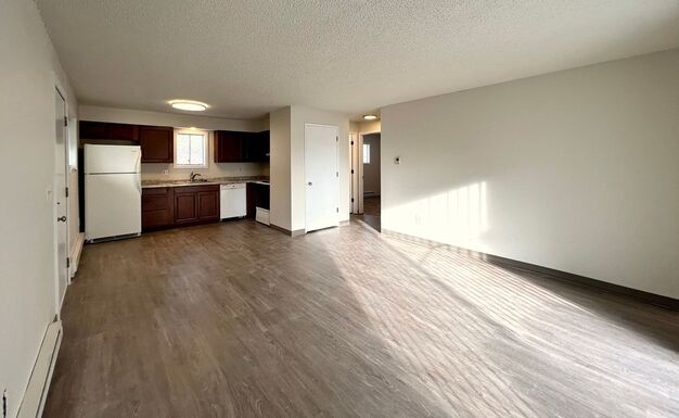 This newly updated apartment feels spacious with its open floor plan! Updates include gorgeous luxury vinyl plank (LVP) flooring, carpets in the bedrooms only, and all-new windows. This property has off-street parking and an on-site shared laundry facility!