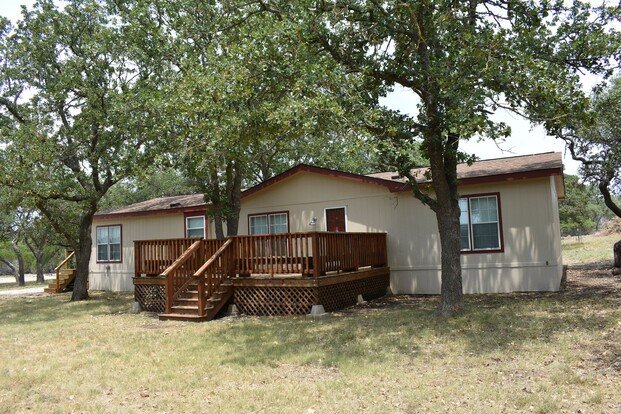Immaculate 1996 Schultz Double Wide Custom Home. Over 2000 square feet. Large kitchen, oversized rooms, walk-in closets, plus........10 ACRES! This place has been completely remodeled with vinyl plank flooring, a walk-in shower in master in lieu of garden tub, fresh paint, and more. Decks off front and back. French doors off living area to watch the wildlife. This place really is nice. Easement road is pretty rough. Truck or SUV recommended. Only 20 minutes to Kerrville. Easy I10 access. .We do not accept applications from Zillow. Any application must be filled out on our Arden Hills Property Management Website. Application requirements are: income must be at least 3x the monthly rent, stable employment, background and credit checks required. Deposit is equal to first months rent and must be paid in full at time of lease signing. A $50 nonrefundable application fee for each person over the age of 18 that will occupy the property. Pets available on a case by case basis. No aggressive breeds..$250 pet deposit per pet and $25/month pet fee per pet. No tobacco property. Visit Arden Hills Property Management's website to schedule a showing or to apply.