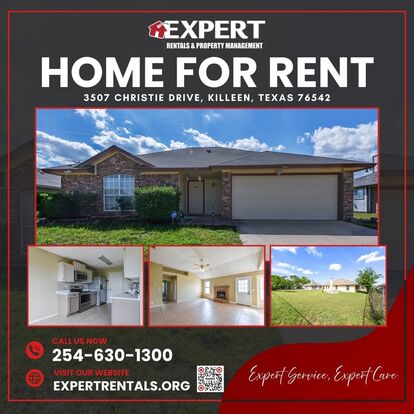 Welcome to 3507 Christie Dr, 3-bedroom, 2-bath home located near Lions Gate Park in Killeen, TX. This charming residence offers 1,038 square feet of living space, featuring tile flooring throughout the main areas and cozy carpeting in each of the bedrooms. The living area is highlighted by a wood-burning fireplace and abundant natural light, creating a warm and comfortable atmosphere. The breakfast area, located just off the kitchen, boasts a vast number of cabinets and a convenient pass-through window to the living room, making it ideal for both cooking and entertaining.